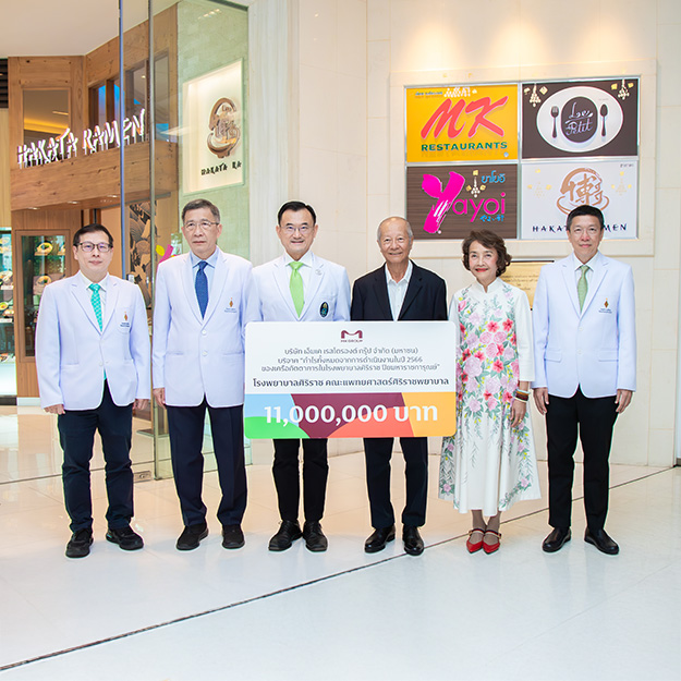 กันยายน : เอ็มเค กรุ๊ป มอบกำไร 11 ล้านบาท ให้แก่คณะแพทยศาสตร์ศิริราชพยาบาลโรงพยาบาลศิริราช (ภารกิจที่ 2)