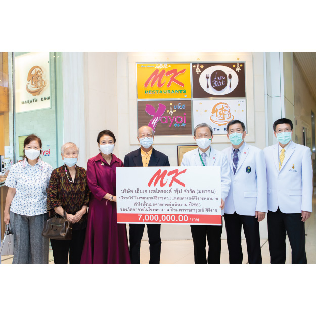 เมษายน : เอ็มเค กรุ๊ป ร่วมกับ มูลนิธิป้าทองคำ บริจาคกำไรให้ รพ.ศิริราช 7 ล้านบาท (ภารกิจที่ 2)
